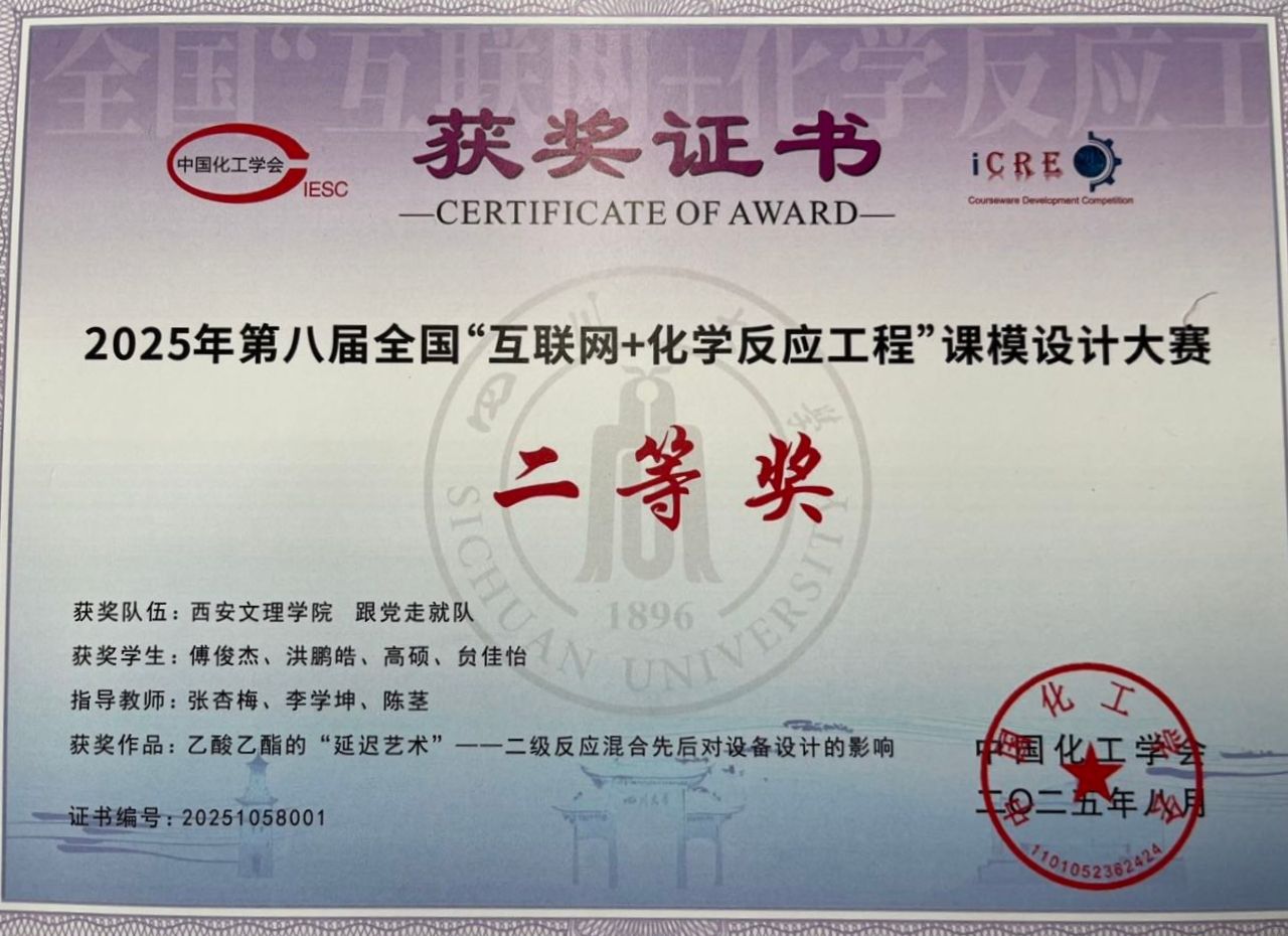 我们学子在第八届全国大学生化工实验大赛西北赛区竞赛斩获佳绩